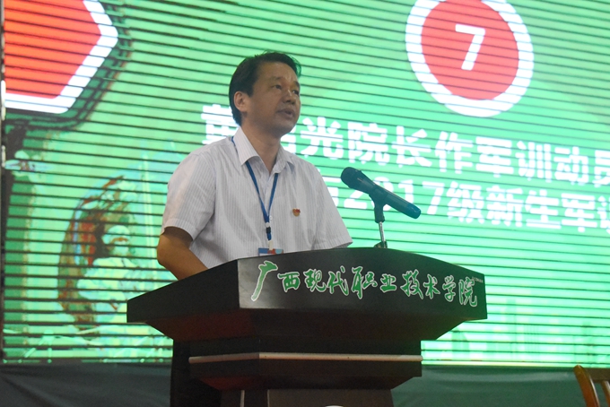 会上,南宁警备区中校郑文武讲话。郑文武强调,参加军训是落实《国防法》的要求,也是建设强大国防的客观需要,更是新生锻炼体魄、磨练意志的有效途径。他希望同学们服从命令,听从指挥,刻苦训练,精诚团结,圆满完成本次军训。