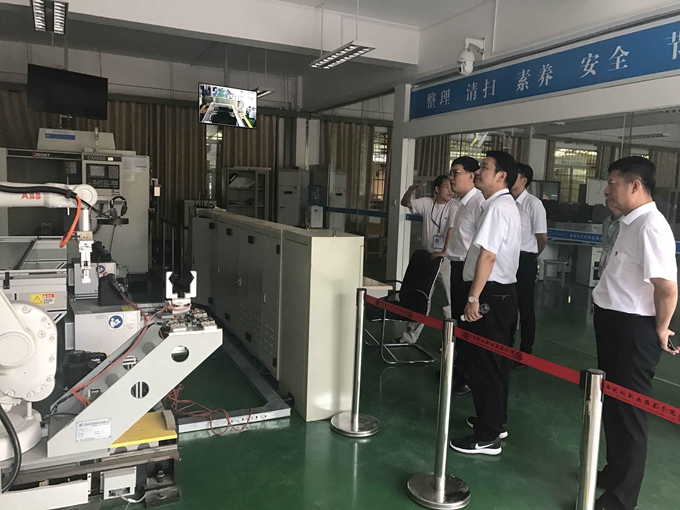 胡乐信一行先后参观了电商学院、第一实训楼、工业机器人实训室等地。考察中,学院院长黄绍光代表学院感谢中国联通长期以来对学院各项事业发展提供的帮助,并为胡乐信一行人介绍了学院近年的发展及人才培养情况。