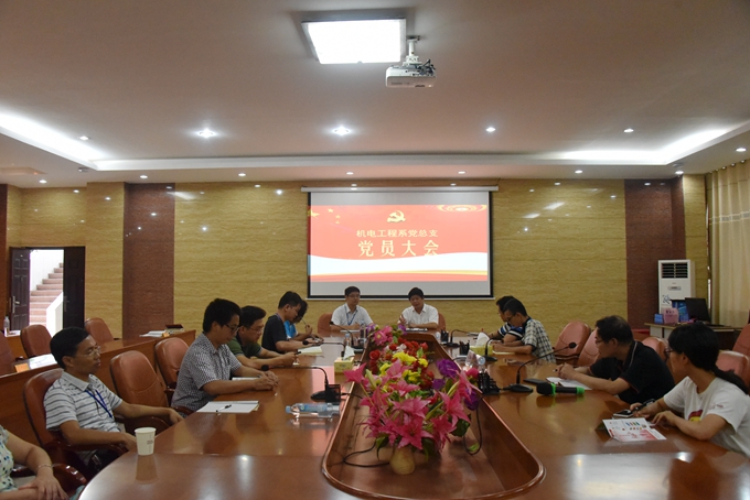 9月19日下午,学院党委书记韦伟松参加并指导机电工程系党总支党员大会。机电工程系主任岑华以及机电工程系党总支全体党员参加会议。