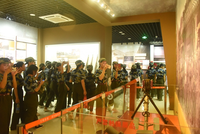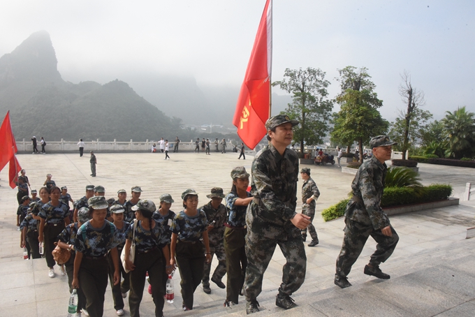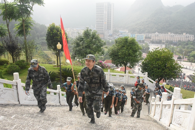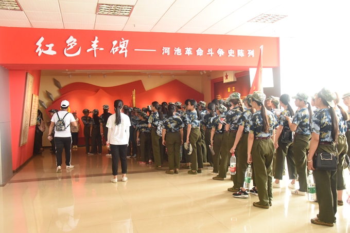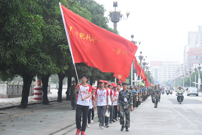 在途经新建西路、城西大道等路段后,师生们到达休整地民族公园。在民族公园,师生们共同参观了河池革命纪念馆,各营分别对学生进行爱国主义教育活动,培养学生的集体荣誉感,增强凝聚力。
