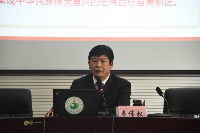 会上,学院党委书记韦伟松作了题为《新思想引领新时代 新使命开启新征程》的专题报告,从“一图读懂十九大报告”、“党章修改的13个要点”、“率先垂范,掀起学习贯彻十九大精神热潮”等方面全面传达了党的十九大会议基本情况、主要内容和重大成果,并就全院学习宣传贯彻十九大精神作动员部署。