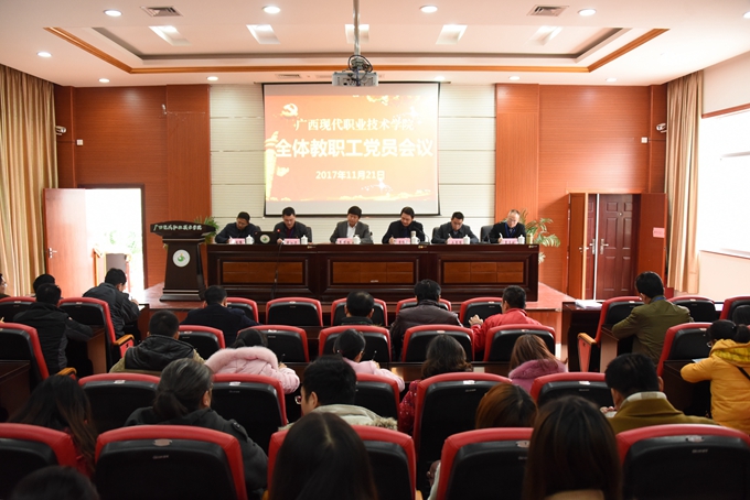11月22日下午,我院在第二学术报告厅召开全体教职工党员大会。学院党委书记韦伟松、院长黄绍光,党委副书记、副院长霍江华,纪委书记冉景峰、副院长冯忠伟出席会议。全体教职工党员参加会议。会议由院长黄绍光主持。