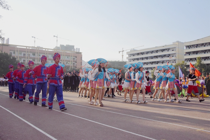 12月25日下午,我院在田径运动场隆重举行“多彩壮乡﹒大美河池”2017年校园文化艺术节开幕式。学院党委书记韦伟松、院长黄绍光、副院长韦胜东、纪委书记冉景峰、市职业教育中心学校副校长谭冠著等两校领导出席活动。我院全体师生及市职业教育中心学校师生代表参加开幕式。开幕式由院团委书记李媛媛主持。