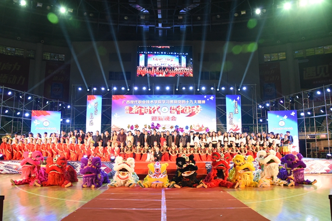 12月26日晚,我院在市体育馆隆重举行学习贯彻党的十九大精神——“走进新时代共筑中国梦”迎新晚会。学院党委书记、市职业教育中心学校校长韦伟松,院长黄绍光、市职业教育中心学校党委书记黄丹峻等两校领导出席活动。我院全体师生及市职业教育中心学校师生代表参加活动。