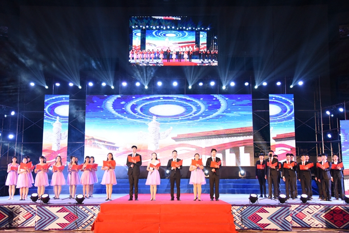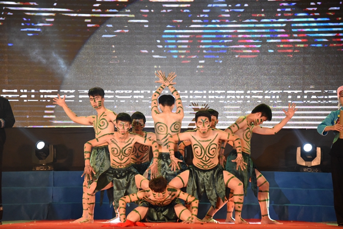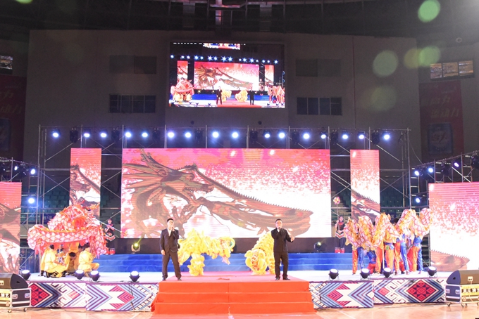 整台晚会形式多样,内容丰富。国家级非物质文化遗产展示《瑶乡鼓韵》拉开了晚会的序幕。而由我院龙狮艺术团带来的龙狮表演《中国龙》,令整个舞台耳目一新,带来强大的冲击感。我院一直注重民族文化进校园建设,由师生们创作的《蚂拐歌舞表演》充分展示了河池非物质文化遗产——壮族蚂拐文化独特的民族魅力和文化内涵。舞蹈《就现在》、三句半《校园新貌》、歌舞表演《国家》、彩调剧《刘三姐》、舞蹈《壮锦献给毛主席》等节目,充分展现了学院学生的青春风采和精神风貌,激发广大师生爱党、爱国、爱校和热爱艺术、勤奋学习、努力成才的热情与动力。