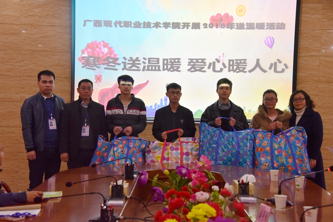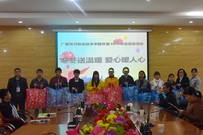 为切实解决同学们冬天保暖问题,保障学生的学习生活,1月12日早上,我院在图书馆会议室开展了“初冬送温暖 爱心暖人心”活动。学院纪委书记冉景峰、学生工作处处长李铃出席活动。活动由学工处副处长刘丽红主持。