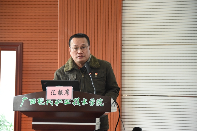 在当天下午召开的2017年秋季学期期末总结会上,院长黄绍光对2017年工作进行总结,部署安排2018年主要工作。黄绍光指出,2017年,学院领导班子一心一意谋发展,全体教职工开拓创新促成效,学院各项工作稳定协调发展,全年工作呈现十大亮点:全体教职工思想高度统一、状态大幅提升;质量持续提高,竞赛有新突破;新生报到创新纪录,规模历史最大;出口畅通,就业再获殊荣;引企入校,校企深度融合;加大投入,基础设施更完善;致力扶贫,社会培训有新招数;全员育人,全面启动德育品牌;校园活跃,民族活动得传承;做好服务,师生满意度提升。黄绍光强调,2018年是贯彻党的十九大精神的开局之年,是改革开放40周年,是广西壮族自治区成立60周年,也是学院成立40周年,全体教职工要持续发力,把思想变成信仰,把意志变成力量,把理论变成行动,把责任变成忠诚,把知识变成能力,要坚持立德树人底线,明确发展任务;深化教育教学改革,强化发展内涵;抓紧抓好学生管理,确保发展质量;加强校园基础建设,巩固发展基础;提升科研创新能力,展示发展水平。要切实抓好内部质量诊改工作,强力推进三全育人工作,加强校园文化建设,构造学校文化品牌,着力提高政治素养和业务能力,增强共事意识,促进学院各项工作实现新发展。