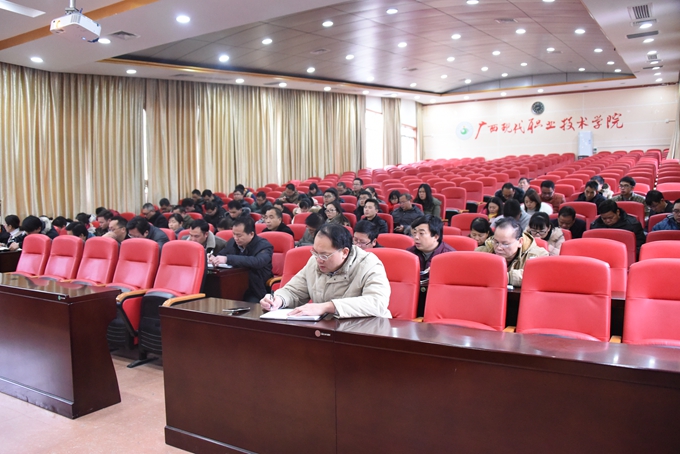 为主动适应我国职业教育发展的新机遇和新挑战,建立常态化的内部质量保证体系诊断与改进(以下简称“诊改”)工作机制,不断提高学院人才培养质量,1月31日,我院在第二学术报告厅召开中层领导干部学习“诊改”文件会议。学院党委书记韦伟松、院长黄绍光、副院长韦胜东、纪委书记冉景峰出席会议。学院全体中层领导干部参加会议。会议由院长黄绍光主持。
