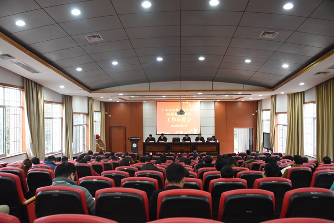 2月27日,我院在学院第二学术报告厅召开内部质量诊改工作布置会。学院院长黄绍光,党委副书记、副院长霍江华,副院长韦胜东、纪委书记冉景峰、副院长冯忠伟出席会议。学院全体中层领导干部参加会议。会议由副院长韦胜东主持。