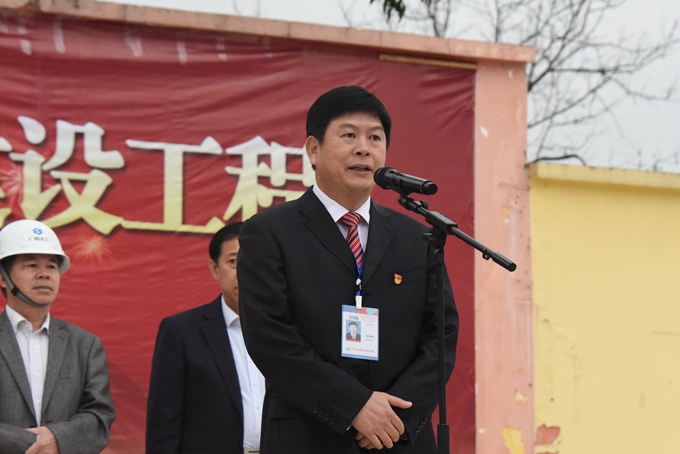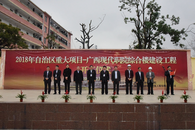 学院党委书记韦伟松宣布广西现代职业技术学院综合楼建设项目正式开工!仪式在阵阵掌声和礼炮声中圆满结束。