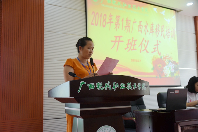 仪式上,玉林市陆川县移民谢丽明代表学院发言。玉林市移民工作管理局罗婉珊代表领队发言,她感谢自治区水库移民管理局和广西现代职业技术学院为水库移民提供了培训机会,并希望全体学员都能珍惜此次机会,加强自我管理,注意安全,学有所成。