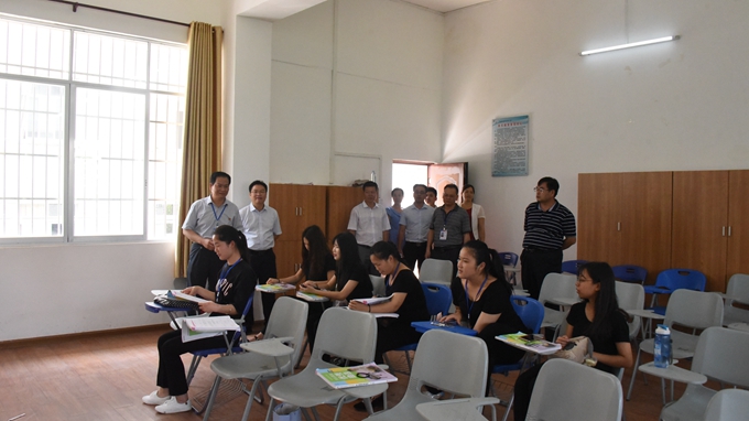 5月25日上午, 巴马民族师范学校党委书记唐旭国带队到我院考察交流。学院院长、党委副书记黄绍光,综合处处长覃孜,工会主席覃志航等领导及各系部相关负责人陪同考察。