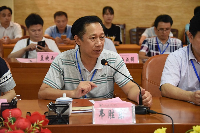 会上,党委书记韦伟松介绍了学院师资概况、学生规模、教学特色和取得的成果,并指出双方的合作有着良好的基础和广阔的前景,希望能推进深入交流和深层次合作,实施协同创新、专业共建、资源共享与合作,交流经验,展望未来,共同探讨校企合作的新模式,培养满足社会需要的高水平技能型人才,为社会经济发展和产业结构调整升级做出贡献,在合作中实现共同发展、共同成长,学校将进一步创新校企合作机制与模式,提升开放办学水平,在合作交流中,推动各项事业再上新台阶。