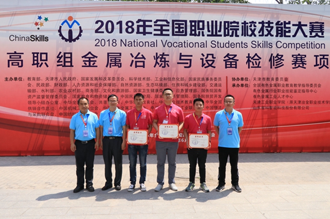 作为2018年全国职业院校技能大赛的收官之作,6月22日,高职组“金属冶炼与设备检修”赛项在天津工业职业学院鸣锣开赛,这也是该赛项首次进入国赛。以我院资源系党总支书记韦文业为领队,资源系副主任韦响、专业教师覃永奔、廖琼章指导的学生赵亚哲、陈鑫、韦广钰,在异常激烈的角逐中,一路过关斩将,最终荣获高职组“金属冶炼与设备检修”团体二等奖!
