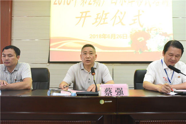 仪式上,柳州市柳江区移民覃有胜代表学员发言。南宁市水利局蔡强科长代表领队发言,他感谢自治区水库移民管理局和广西现代职业技术学院为水库移民提供了培训机会,并希望全体学员都能珍惜此次机会,加强自我管理,注意安全,学有所成。