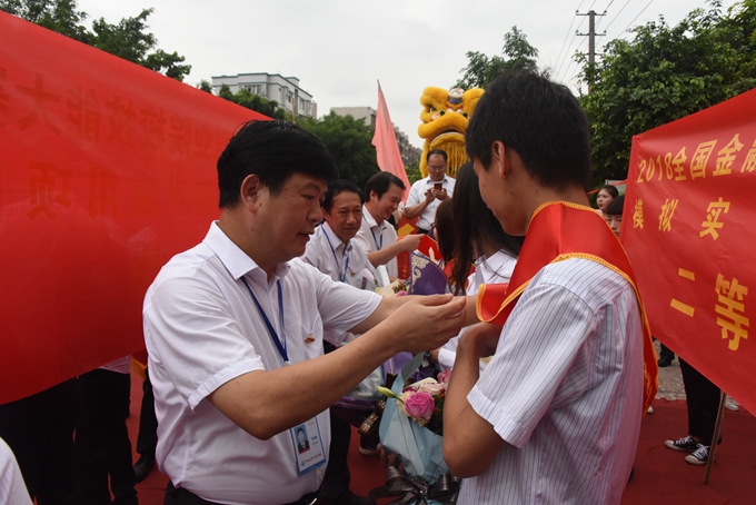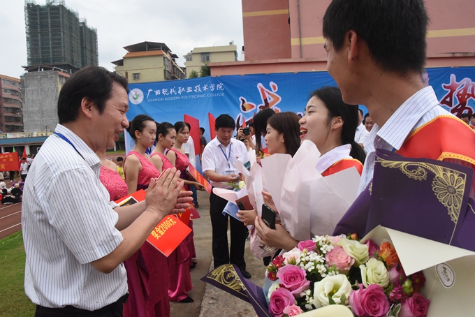 锣鼓喧天,夹道祝贺。7月3日上午,我院师生排着长队,热烈欢迎学院技能竞赛获奖师生们。随后,我院在学院舞台召开2018年上半年技能竞赛获奖师生表彰奖励大会。学院党委书记韦伟松、院长黄绍光、河池市职业教育中心学校党委书记黄丹峻等两校领导,以及获奖师生出席大会。学院全体师生参加大会。大会由副院长韦胜东主持。