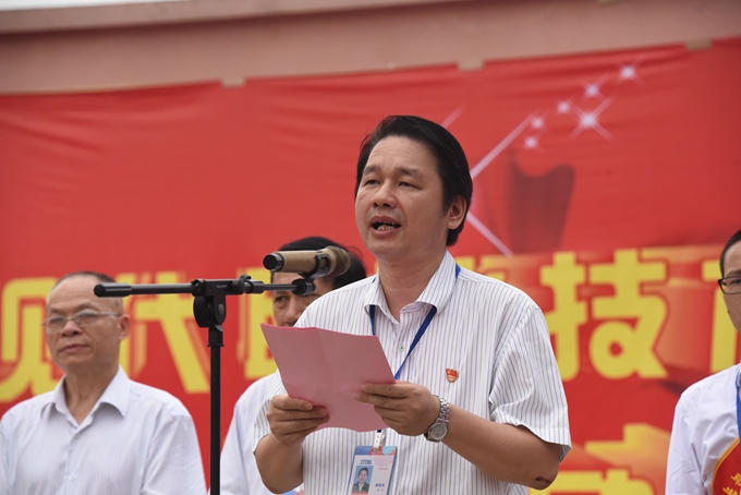 院长黄绍光在会上介绍2018年上半年我院学生参加自治区级和国家级技能竞赛获奖情况。2018年以来,我院学生在各类技能竞赛中,取得了辉煌成绩,参加广西职业院校技能竞赛共获得一等奖5项,二等奖8项,三等奖19项;5支代表队代表广西参加2018年全国职业院校技能大赛共获得二等奖3项。