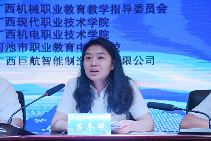 全国机械职业教育发展中心吕冬明副处长表示,广西机械行指委立足西南、放眼全国,在为政府提供咨询、为行业发展提供服务,特别是长期以来在人才培养方面发挥了重要作用。吕东明强调,广西机械行指委要抓住“一带一路”战略机遇,抓紧学习领会,理清工作思路,认真研究关于深化产教融合的若干意见、职业学校校企合作创新办法等,确保新理念精神落地开花;要打造产教协同发展的新优势,建立更加及时有效的产教互动机制,不断推进校企协同育人,把职业教育做大做强;要优化专业结构,服务产业发展;要加强自身建设,全面提升行业指导能力,为职业教育发展作出更大贡献。广西行指委的工作是整个行业、也是全国机械行指委工作不可或缺的基地,相信通过这次会议,能进一步增强广西职教人的凝聚力,行业和企业的积极性,积极引领行业发展、切实推动工作再上新台阶,打造职业教育的新局面。