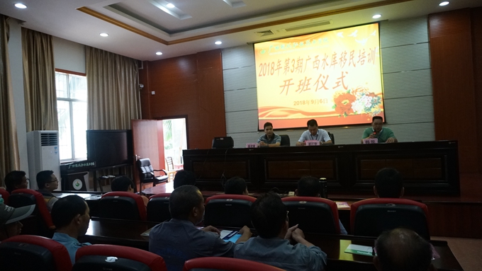 9月6日上午,我院在第二学术报告厅举行2018年第三期广西水库移民培训班开班仪式。来自南宁、玉林、防城港、北海、来宾、贺州、河池等七个市290余名库区移民学员参加此次培训。学院党委副书记、副院长霍江华、南宁市水利局陈奕栋出席开班仪式。仪式由学院培训部副主任韩锐主持。