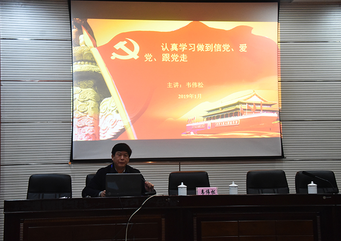 韦伟松书记指出,加强入党积极分子教育培训,是我院思想政治教育和党建的常规性重要工作,举办这个培训班,就是要通过党校系统的理论讲授和党的基本知识的学习,使同学们在入党之前进一步打下牢固的思想理论基础,全面掌握党的基本知识,进一步澄清同学们在入党问题上的一些模糊认识,健全核心价值观。韦书记提出,入党积极分子要端正学习态度,学有所获解决成长成才问题,发挥模范带头作用,弘扬学院精神,发扬时代新风,践行社会主义核心价值观,在学习、工作和生活中,时刻严格要求自己。 开班典礼后,学院党委书记韦伟松作了关于“认真学习做到信党、爱党、跟党走”的专题讲座。