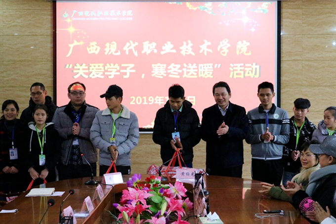 1月4日上午,我院在图书馆会议室开展“关爱学子 寒冬送暖”活动,为家庭经济困难的学生送去温暖与关怀。学院院长黄绍光出席活动。学工处处长李铃、以及各系教师代表、学生代表参加活动。活动由学工处副处长黄晓主持。 院长黄绍光、学工处处长李铃及各系教师代表将御寒棉被送到贫困学生手中,同学们接过的不仅是一床床棉被,更是一份厚重的温暖和关怀,如冬日里的一抹暖阳,让国家资助政策的阳光真正温暖每一位家庭经济困难学生。 随后,院长黄绍光对同学们寄予新年期望,希望同学们不畏困难,坚强乐观地面对暂时困难,自信勇敢地迎接各种挑战;希望同学们刻苦学习,不断扎实学习各项技能知识,做有责任、有理想、有担当、有追求的新时代青年;希望同学们做一个常怀感恩之心的人,珍惜来之不易的在校学习生活,自强不息、励志进取,用知识改变命运,用爱心回报社会。 此次活动的开展不仅给予了同学们物质上的帮助,也为他们安心学习、生活提供了精神动力。受助学生们表示,今后将好好学习,努力提升专业技能,将来回报母校,奉献社会,努力成为适应经济社会发展需要的人才。