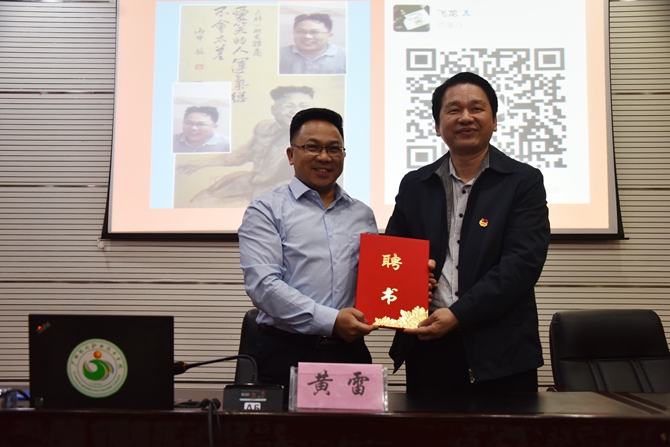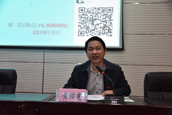 5月5日晚,学院“现代大讲堂”第四场开讲,此次报告会邀请了河池日报社党组书记,社长黄雷进行授课。院长黄绍光出席并主持。学院党委副书记霍江华、纪委书记张斌及学院师生代表到场聆听。 黄雷以详实的数据和图片向师生们解读了我国的地理方位、自然环境和与周边国家的相互关系,面临美国的军事威胁和中美贸易摩擦,归纳了外部挑战的特点,并着重分析习近平总书记面对这些挑战,沉着应战确定了“一带一路”的有效的治国理政方略,充分体现了为推动构建人类命运共同体、促进人类和平与发展事业贡献的中国智慧和中国方案。 黄雷社长对习近平总书记的治国理政方略领会深刻,紧密结合实际,把深奥的博大精深的方略讲得通俗易懂,引导学生要胸怀祖国,放眼世界,使师生们对“一带一路”的治国方略有了进一步的深刻认识。 讲座结束后,学院院长黄绍光代表学院,向黄雷社长颁发了客座教授的聘书。
