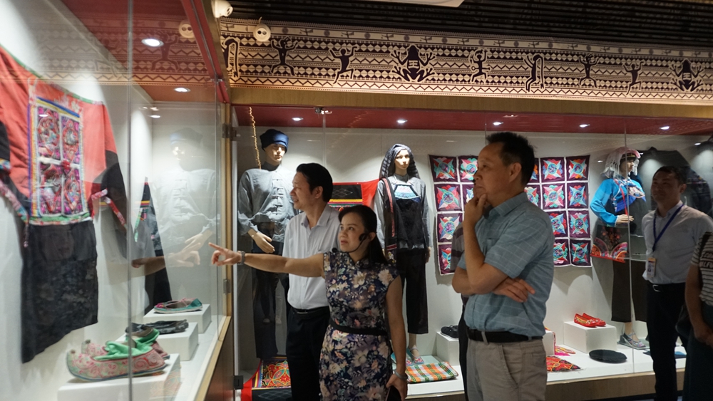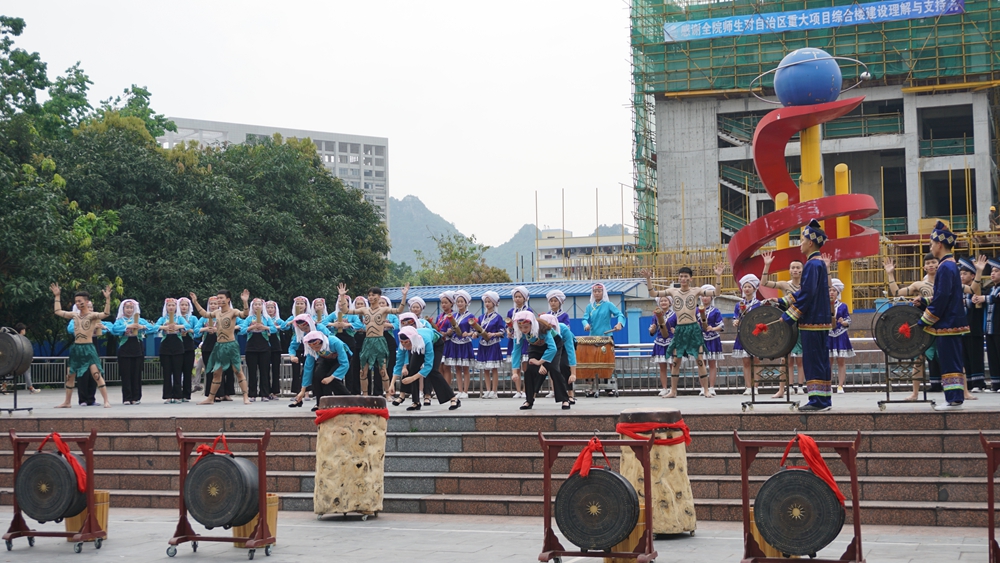 考察组分别到我院蚂拐文化展示中心、百越民歌音乐室进行了实地考察,院长黄绍光陪同考察,并向考察组汇报了我院“民族文化传承创新职业教育基地”项目建设的情况。之后,考察组还观看了我院蚂拐文化项目传承的教学成果,并对我院非物质文化遗产的教育教学成果及项目建设的成效给予了充分的肯定。