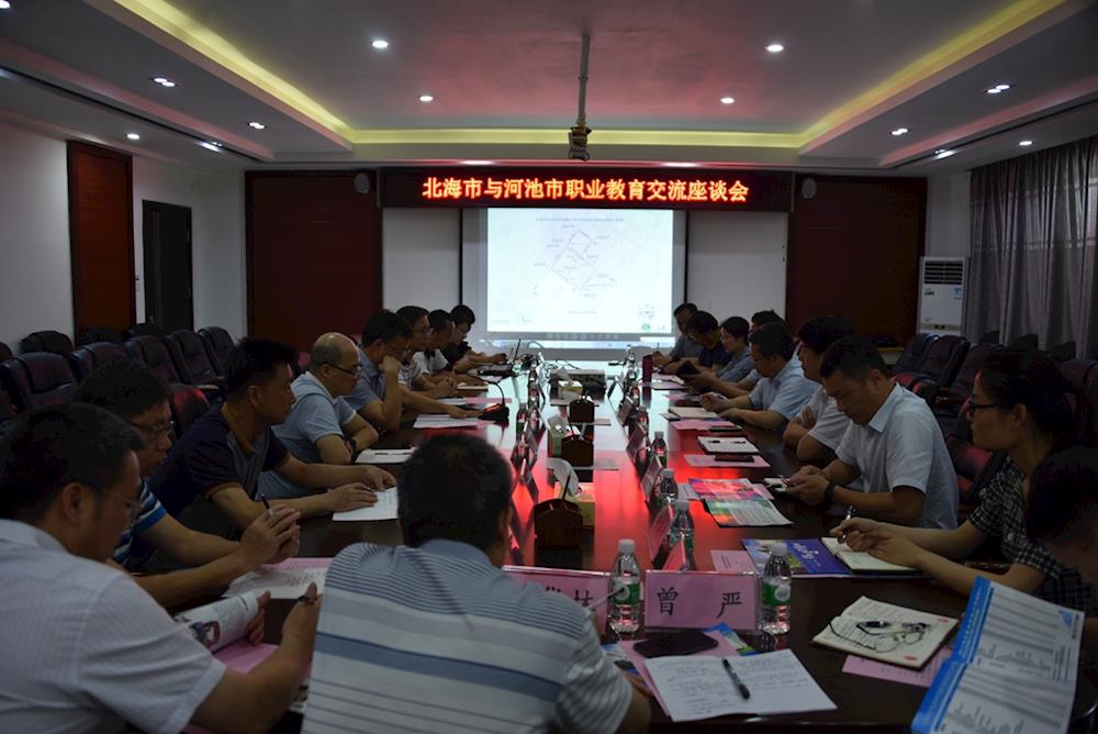 28日下午,北海市与河池市职业教育交流座谈会在北海职业学院举行,两市发改委、人力资源社会保障局、财政局、教育局等领导及我院、市职业教育中心学校领导参加了座谈。会议由北海职业学院党委书记林旺兴主持。