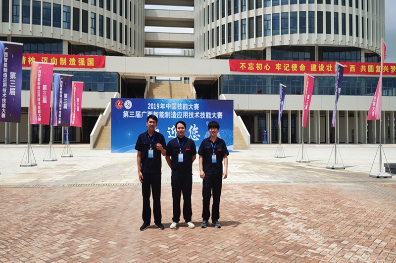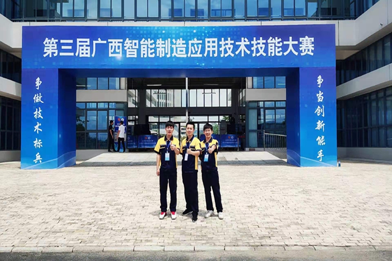 近日,第三届广西智能制造应用技术技能大赛决赛在南宁市举行,根据广西壮族自治区人力资源和社会保障厅广西壮族自治区总工会《关于公布第三届广西智能制造应用技术技能大赛决赛成绩的通知》,由我院韦韩、邱思维、黄林生老师组成的参赛队获“钳工(切削加工智能制造单元安装与调试)”赛项教师组一等奖第一名;由学生王俊宇、苏宏键、庞健海组成的参赛队获“钳工(切削加工智能制造单元安装与调试)”赛项学生组二等奖;学院党委书记韦伟松获“优秀教练”称号。