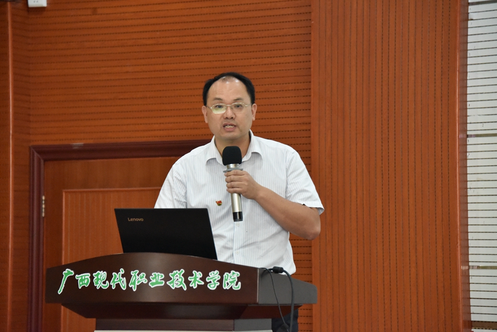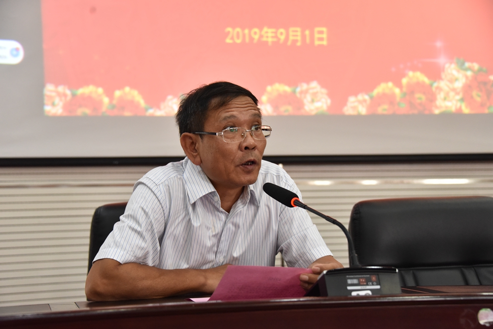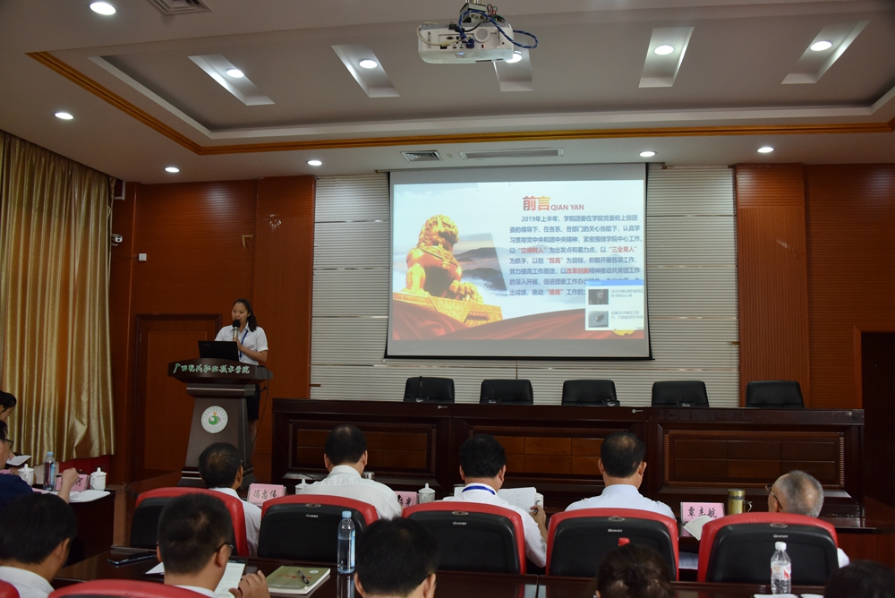 9月1日上午,我院在第二学术报告厅召开 2019—2020年上学期第一次全体教职工会议。学院党委书记韦伟松,院长黄绍光,纪委书记张斌,副院长冯忠伟,总顾问覃志航,院长助理韩江河、杨奎、覃孜出席会议,学院全体教职工参加会议。会议由副院长冯忠伟主持。