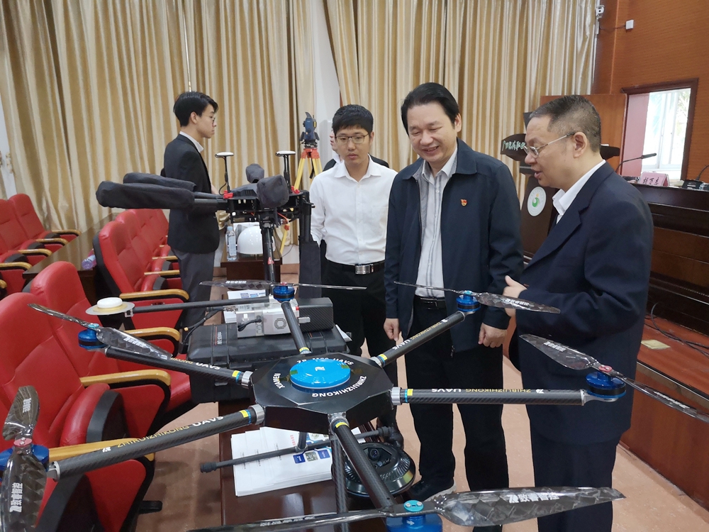 会议装备展示区还集中展出了常规测量仪器和无人机等高端新仪器,同学们早早来到会场,提前观摩新设备和新技术。此次活动的举办,不仅帮助同学们了解当前测绘地理信息前沿技术动态,促进测绘新技术、新成果的应用,也推进了学院产教融合、校企合作的深化发展。