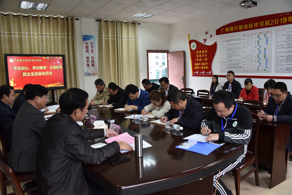 中共广西现代职业技术学院委员会“不忘初心 牢记使命”专题民主生活会动员会在学院一号办公楼五楼会议室举行。