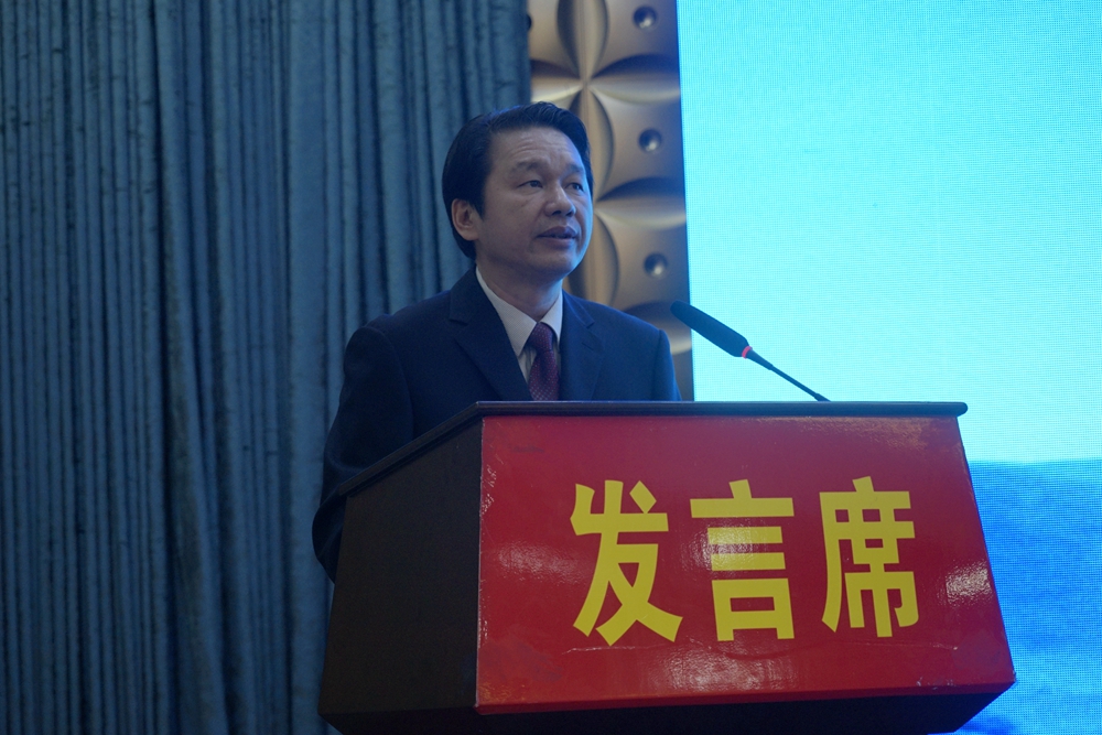 河池市政府副秘书长韦照吉致辞,他表示,河池职教集团成立以来,积极推进中高职办学,搭建人才成长立交桥,主动对接地方产业发展,先后组织职业院校对接河池产业园区推进产教融合发展,并发挥职业教育扶贫功能,对河池打赢脱贫攻坚战作出了应有的贡献。今年河池职业教育集团被认定为自治区示范性职教集团,在全区100多个职教集团中脱颖而出,这是职教集团各成员单位努力的结果。希望各成员单位一如既往关心和支持,在区域协调发展战略思维下,通过职教集团这个平台,积极探索集团化办学道路,扎实推进产教融合、校企合作等工作。为企业自身发展提供人力资源保障,为河池经济社会发展提供人才支撑。
