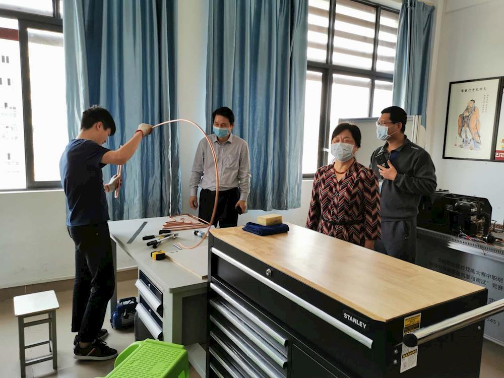 当天下午,黄绍光院长一行到广西二轻高级技工学校进行考察,交流合作办学事宜。交流会上,两校领导分别介绍了本校的办学情况和办学特色,双方就对口升学、合作办学事项作了深入交流,并初步达成了合作办学意向。会后考察组一行参观了广西二轻高级技工学校实训室、学生手工成果展示室等。