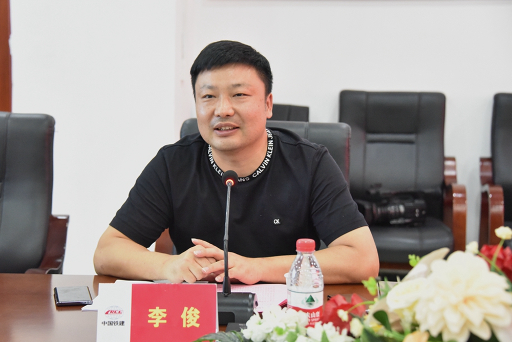 李俊介绍近年来贵南高铁项目部取得的成果。他表示,取得这些成绩,也离不开学院为集团输送的人才。希望双方基于此次现代学徒制培养模式改革与实践校企合作协议的签订,认真按照现代学徒制实施方案推进各项工作开展,共同努力,相互促进,优势互补,共同发展,为助力地方经济发展和祖国建设事业培育出更多更优秀的人才。
