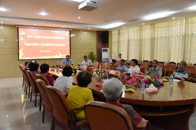 7月22日下午,学院在图书馆会议室召开离退休教职工党支部党员代表座谈会。学院副院长杨奎、人事处处长潘华林、工会主席陆峰出席会议,10多名离退休教职工党员代表参加座谈会。座谈会由人事处处长潘华林主持。