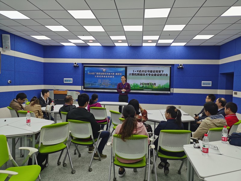 赛后,指导老师们还举行了1+X试点证书建设背景下计算机网络技术专业建设研讨会,胡万志主任在会上做我院专业建设经验交流。