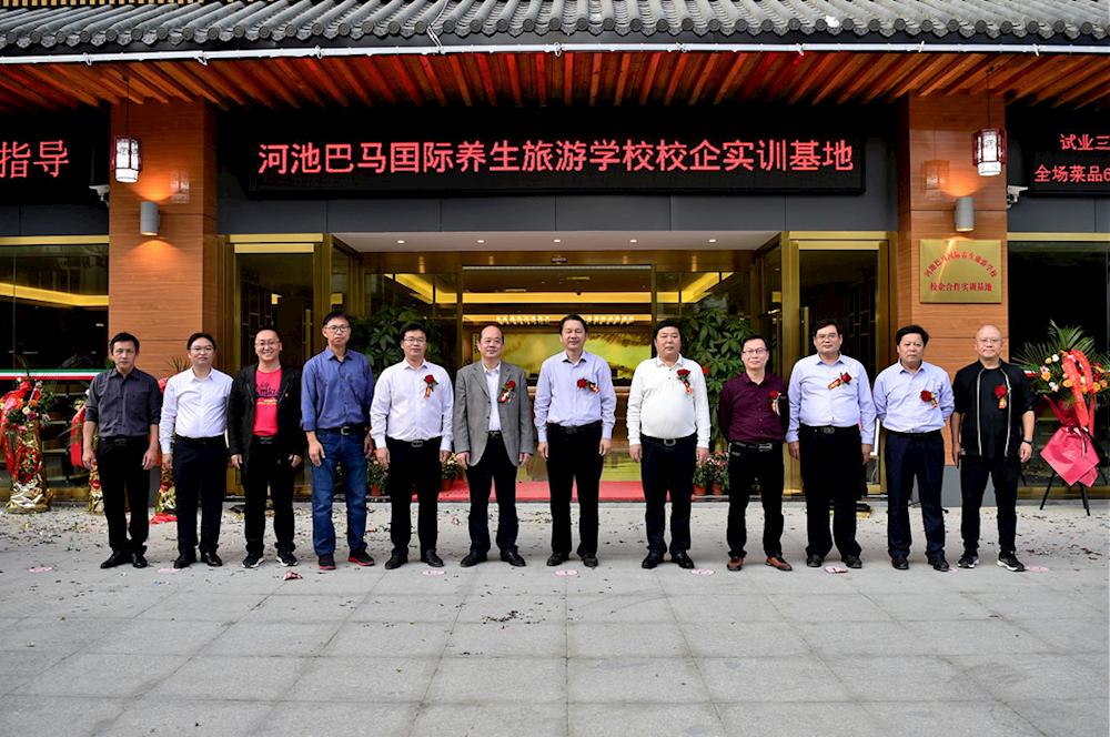 黄院长一行参观了巴马健康养生美食研发基地的大师工作坊、巴马国际健康养生美食展示馆,并参与了河池巴马国际旅游学校校企实训基地揭牌仪式,最后分别与巴马国际养生旅游学校和广西宏泰成建筑集团有限公司进行座谈。