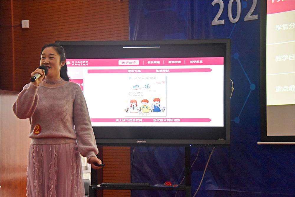 本次决赛重点考察教师课堂教学设计能力和在课堂教学中运用信息技术、数字资源及教学平台完成教学任务、融入思政教育的能力。为了营造全员参与课程思政的氛围,除了各系、部经过初审选拔推荐的7位老师外,还从本学期任课的所有专兼职教师中现场随机抽取7位老师作为“踢馆”选手加入PK,增加了比赛的刺激程度。