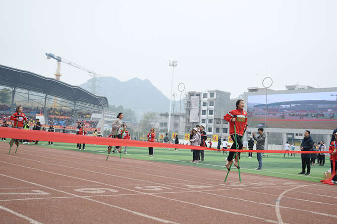 运动会当天,进行了三人竞技板鞋、高杆抛绣球、背篓接绣球、踩高跷竞速、打陀螺等少数民族传统体育竞技项目,以及跳远、铅球等项目的比赛。