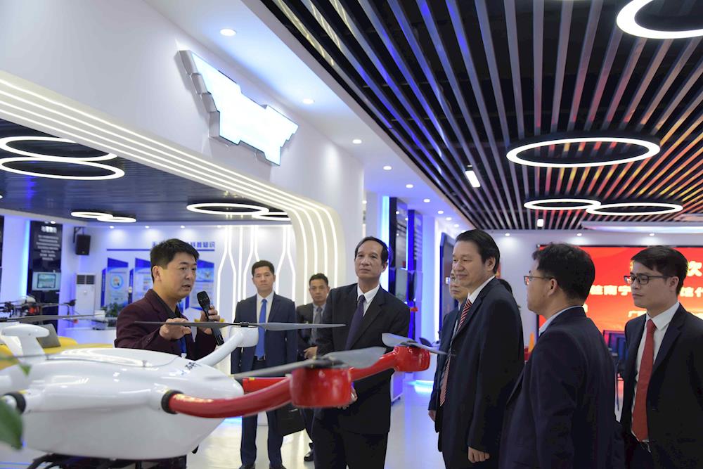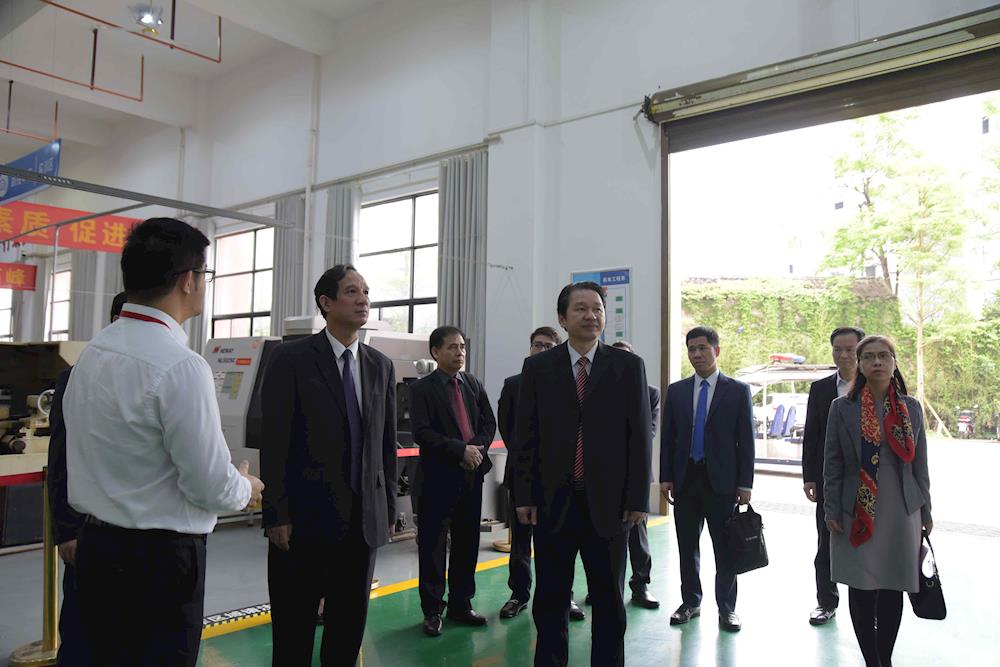 随后,代表团一行参观了我院电商学院、机械制造与自动化实训基地、工业机器人技术实训基地,以及无人机技术应用实训基地和校园环境。陈金榜一行对我院先进的职业教育理念、完备的实训室设施给予高度肯定和评价,并表示希望未来能与我院有更深层次的合作。