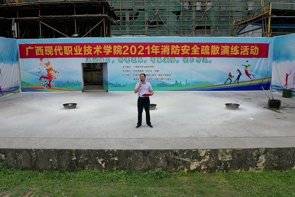 为进一步贯彻落实《自治区教育厅关于进一步加强学校消防安全工作的通知》(桂教安稳{2021}11 号)文件工作要求,切实提高广大师生防火安全意识和危机事件应对能力,保护师生的生命和学校财产不受损害,2021年5月29日上午,学院在田径场开展宿舍楼火灾事故逃生自救应急逃生疏散演练活动。学院副院长杨奎出席活动,保卫处副处长韦俊、罗明都,学生安全工作处副处长韦世安,宣传部副部长唐迪,教育系书记覃琳琳,信电系书记兰建扬等领导参加活动,本次演练由保卫处副处长韦俊主持。