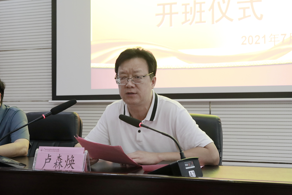 7月3日上午,我院在第二学术报告厅举行2021年第一期广西水库移民培训班开班仪式。来自玉林市各县区的138名库区移民学员参加此次培训。学院副院长卢森焕,培训部主任罗之尚、副主任韩锐,玉林市水库和扶贫异地安置中心培训科科长詹永林出席开班仪式。仪式由培训部主任罗之尚主持。