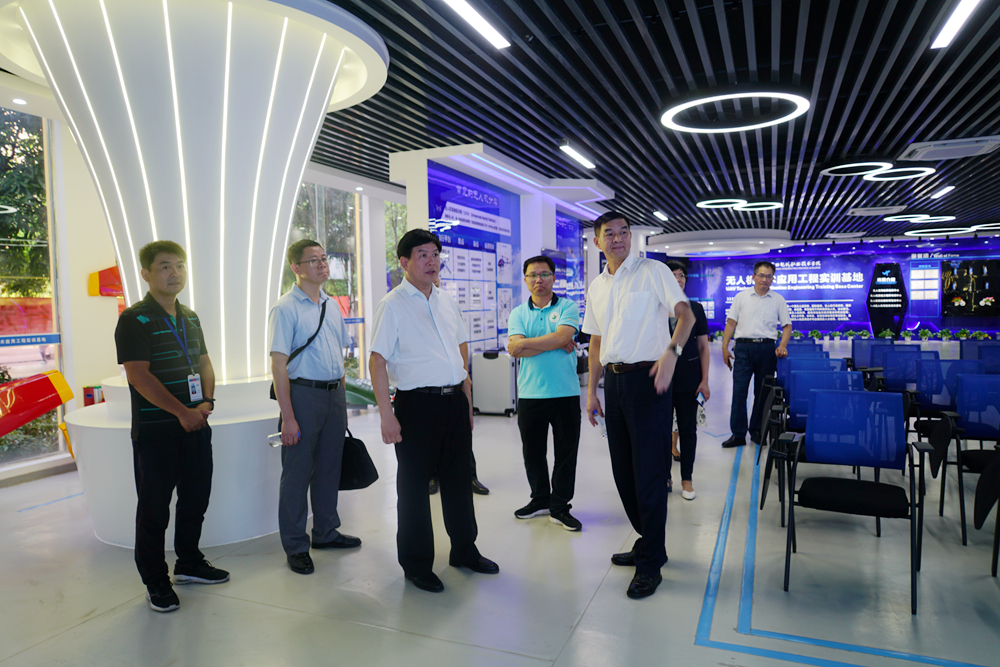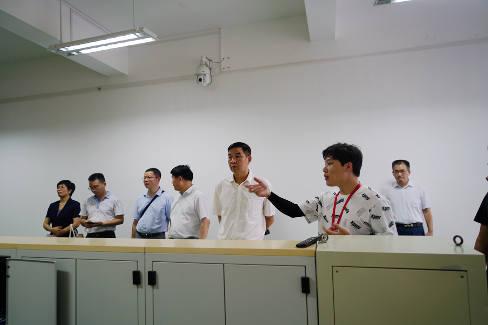7月13日下午,河池学院党委书记韦安光率队到我院考察调研,在河池学院党委副书记、我院党委书记韦伟松,副院长卢森焕、杨奎的陪同下,参观考察了我院电商中心、冶金博物馆、建筑系监测站、机电楼智能机器人中心、无人机展示中心等地。