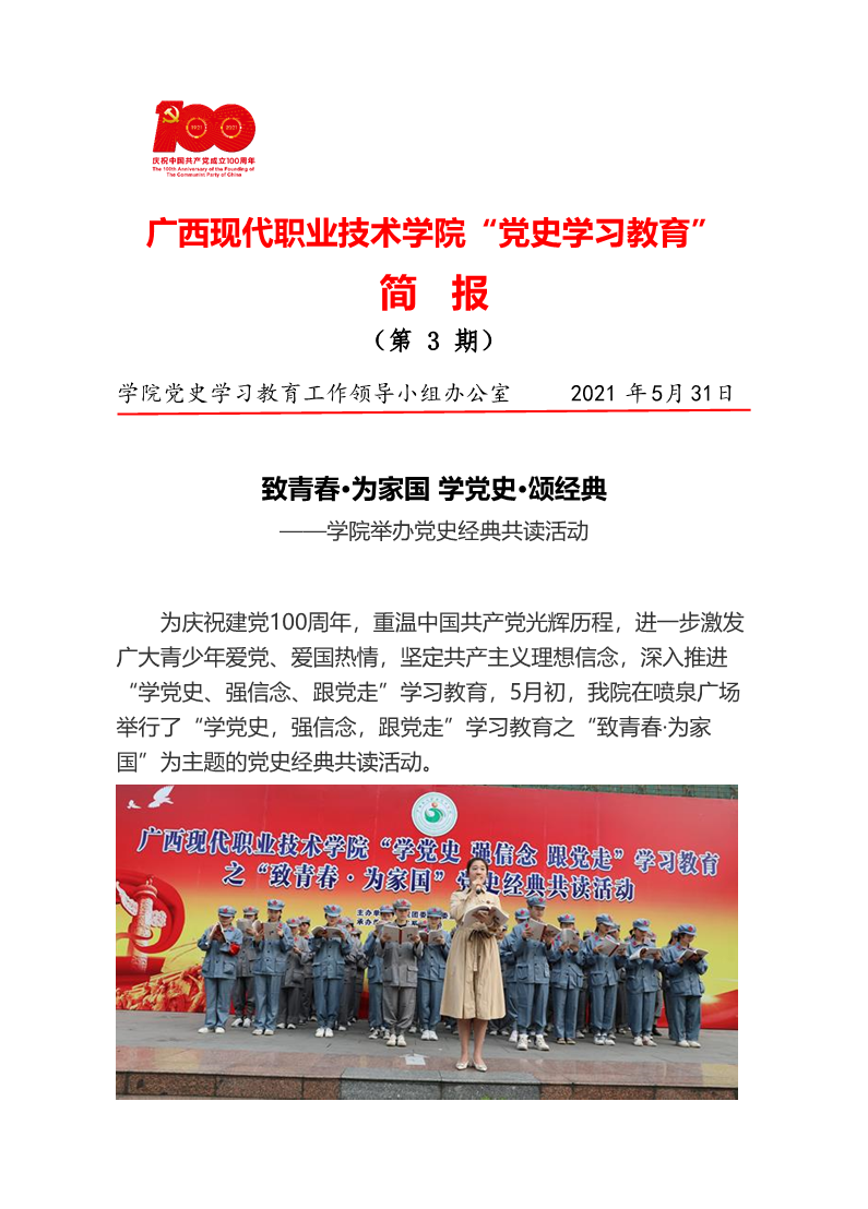 广西现代职业技术学院“党史学习教育”简报 第3期