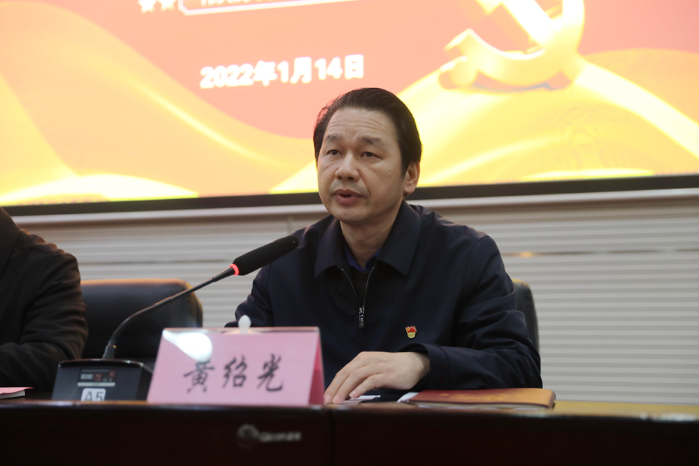 黄绍光提出三点要求,第一是及时传达学习,各党支部要迅速召开会议,及时传达学习党中央以及全区教育系统党史学习教育的总结会精神,切实把思想和行动统一到党中央、自治区党委、教育工委以及市委的决策部署上来;第二是认真做好总结,结合实际做好党史学习教育专题民主生活会的筹备工作,要努力开出高质量的专题民主生活会,要在认真做好党史学习教育总结工作的基础上,全面梳理总结取得的突出成效、有效的做法和提供的成功经验。建立党史学习教育常态化长效化的机制,要做到善始善终,善做善学;第三个是要求要扎实推动工作,要把学习教育成果转化为推动学院高质量发展实际的成效,深入学习贯彻党的十九届六中全会精神和习近平总书记关于教育的重要论述,持续把学史力行落到实处,全面贯彻党的教育方针,落实立德树人的根本任务,加快构建高质量的职业教育、办好人民满意的教育,奋力走好“双一流”建设新的赶考之路,以优异成绩迎接党的二十大胜利召开。
