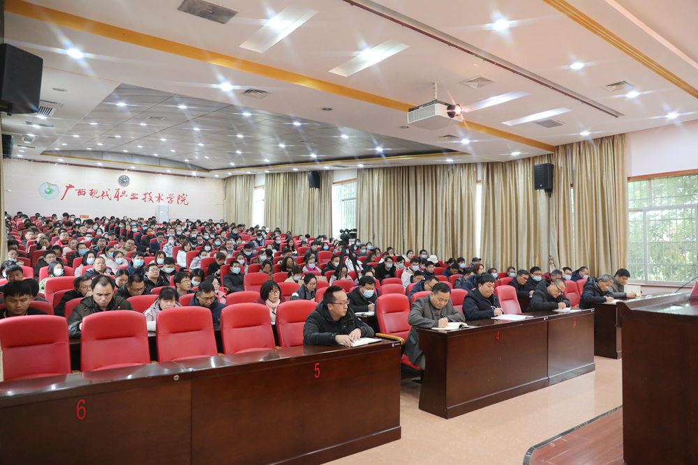 为深入学习习近平总书记重要讲话和重要指示精神,认真贯彻落实中央党史学习教育总结会精神,全面总结我院党史学习教育经验和成效,巩固深化党史学习教育成果,1月14日下午,学院在第二学术报告厅召开党史学习教育总结会议。河池学院党委副书记、学院党委书记韦伟松,学院院长、河池市职业教育中心学校校长黄绍光,纪委书记张斌,学院副院长黄耀、杨奎出席会议。全体教职工参加会议。会议由院长黄绍光主持。
