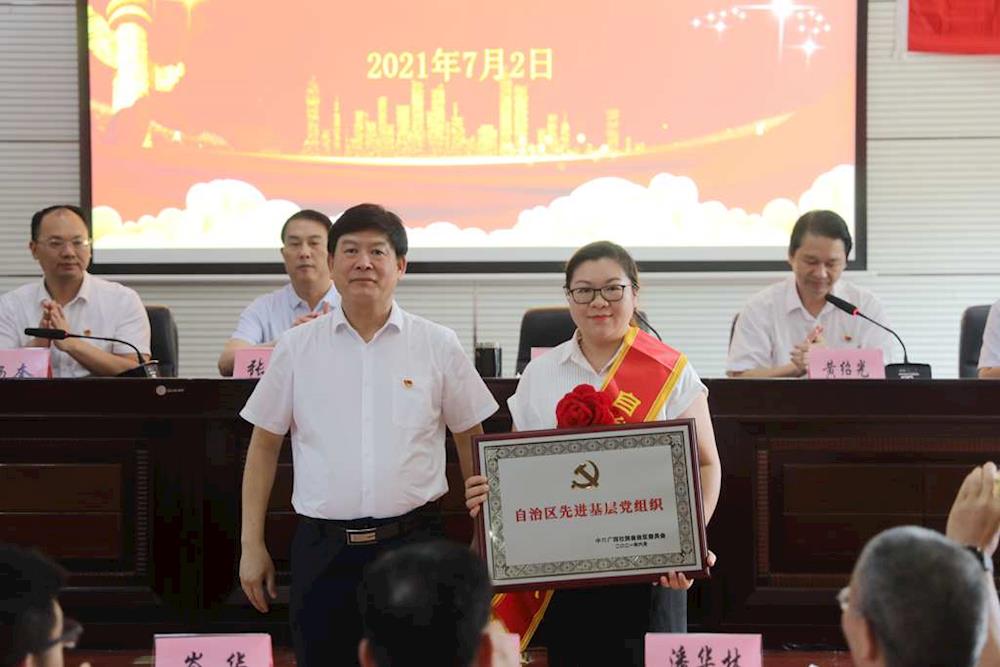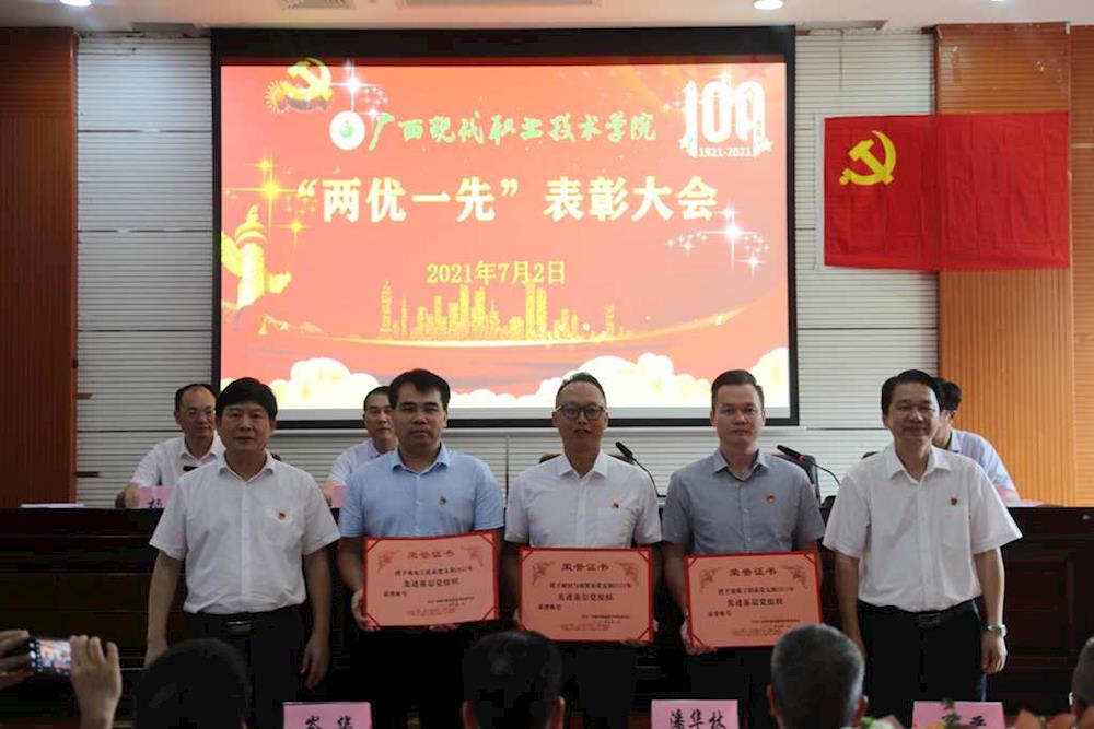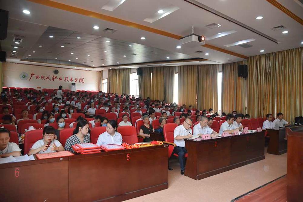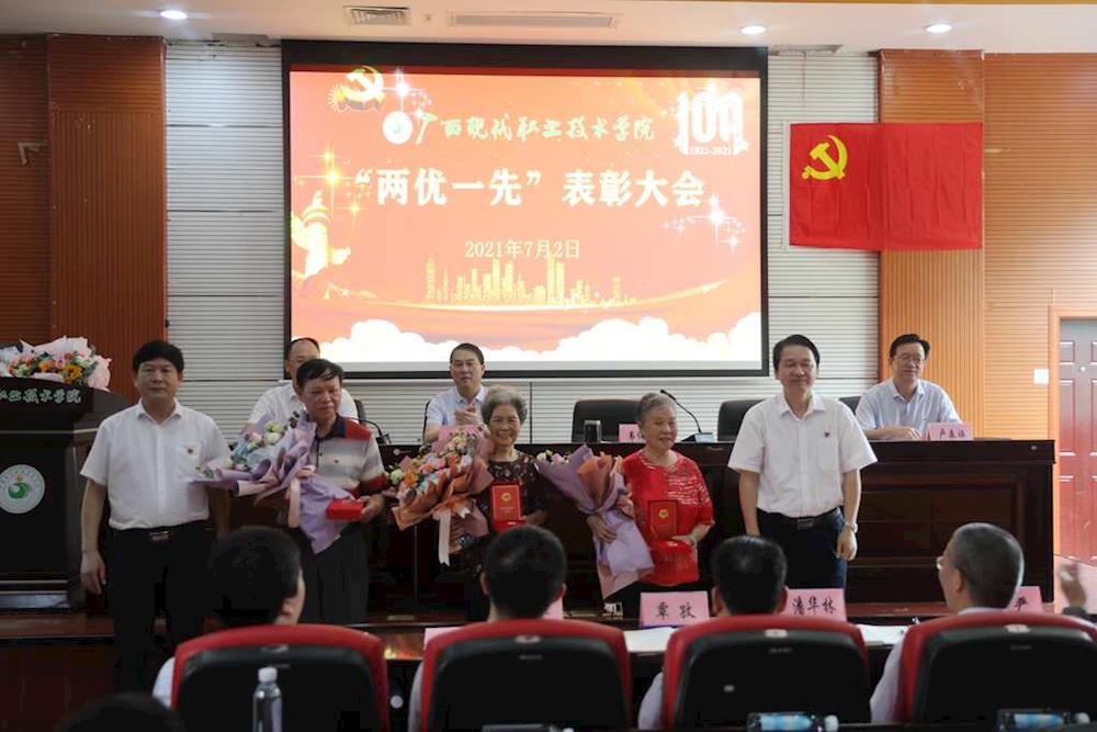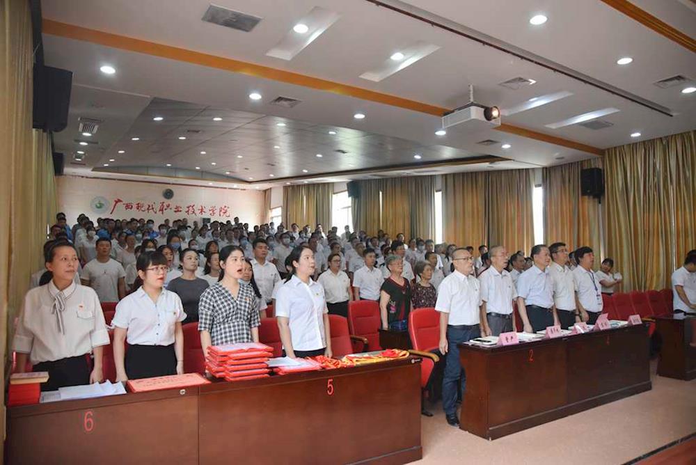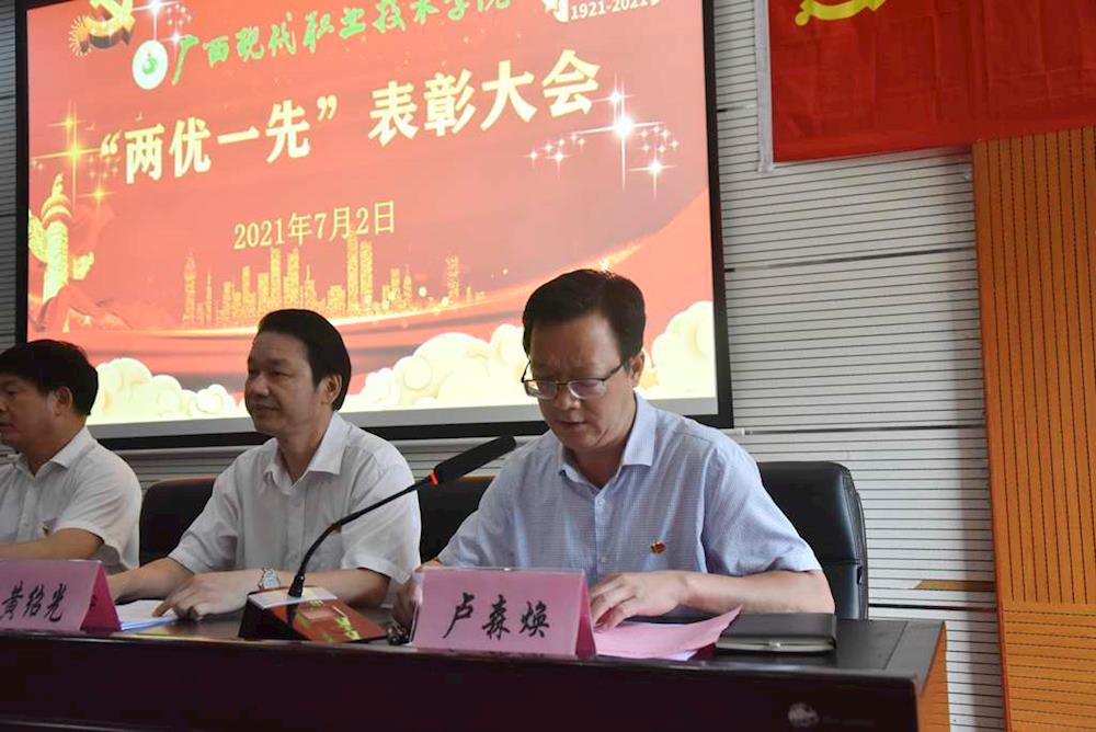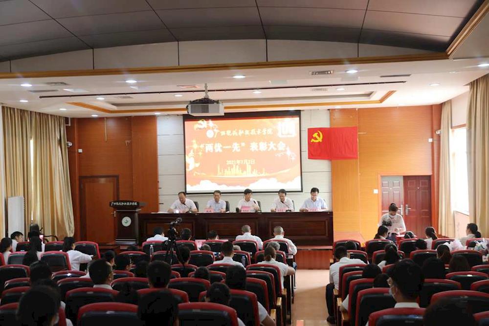 在庄严的国歌声中,大会拉开帷幕。杨奎副院长宣读了自治区、河池市、学院相关表彰文件,与会领导分别为先进基层党组织和优秀共产党员、优秀党务工作者颁奖。
