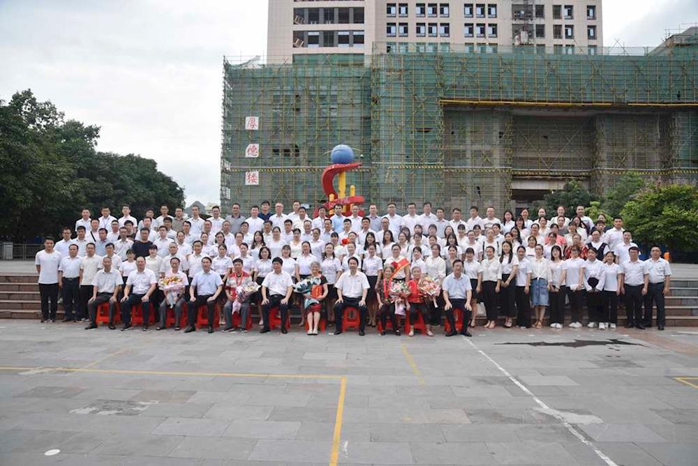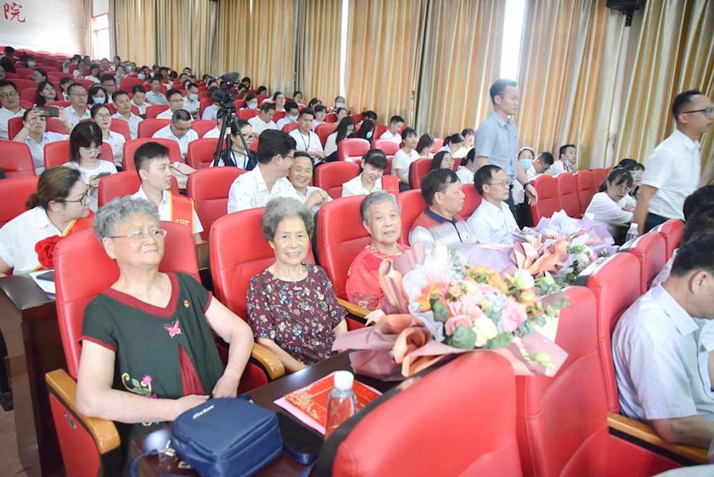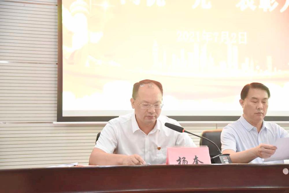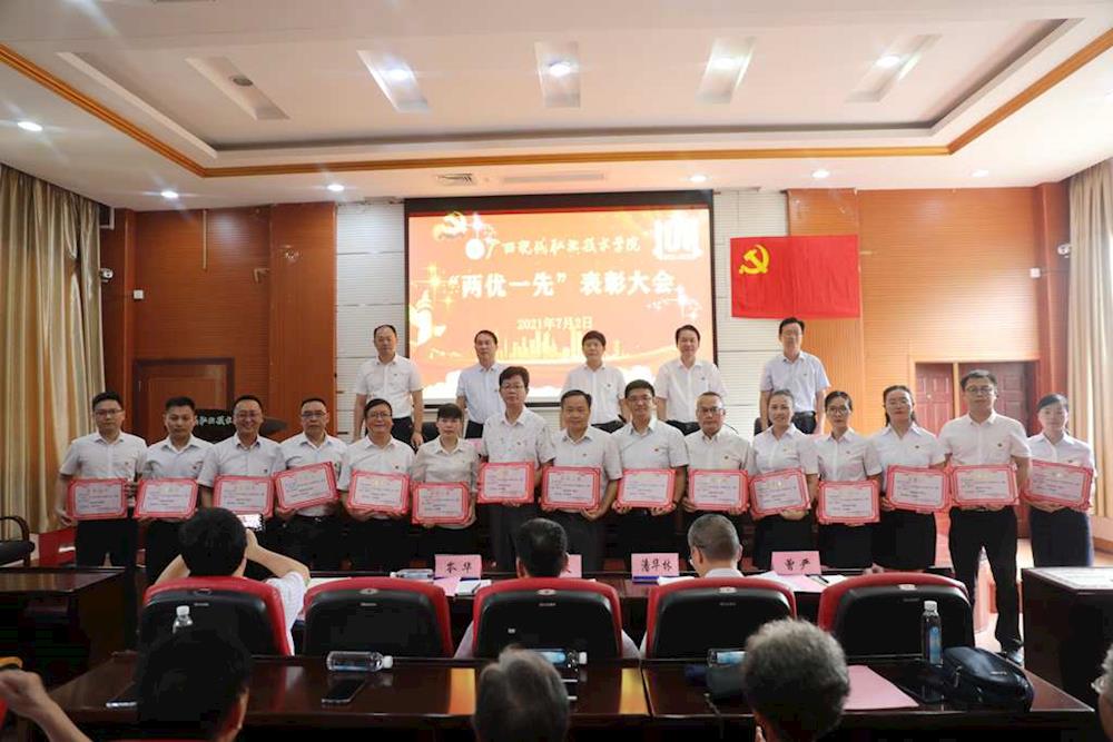 为热烈庆祝中国共产党成立100周年,表彰先进、树立典型,向在党50年老党员致敬,7月2日下午,我院在第二学术报告厅召开2021年“两优一先”表彰大会。河池学院党委副书记、学院党委书记韦伟松,学院党委副书记、院长黄绍光,纪委书记张斌,副院长卢森焕、杨奎出席会议,全院师生党员参加会议。会议由黄绍光院长主持。
