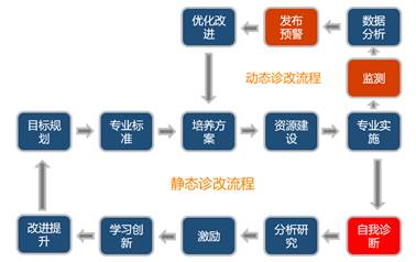 专业层面基于专业建设规划、专业建设标准和专业人才培养方案,从专业教学团队、实践教学、教学资源、人才培养等方面,按目标任务开展考核性诊断,实施目标管理与部门绩效考核。利用学校智慧校园信息管理系统和诊改信息平台,采用实时采集和静态采集相结合的方式,采集专业建设数据,实时监控专业建设过程,撰写诊改报告,总结建设成效,分析存在问题,纳入下一轮诊改,形成常态化机制。